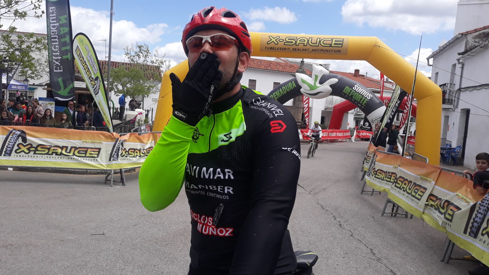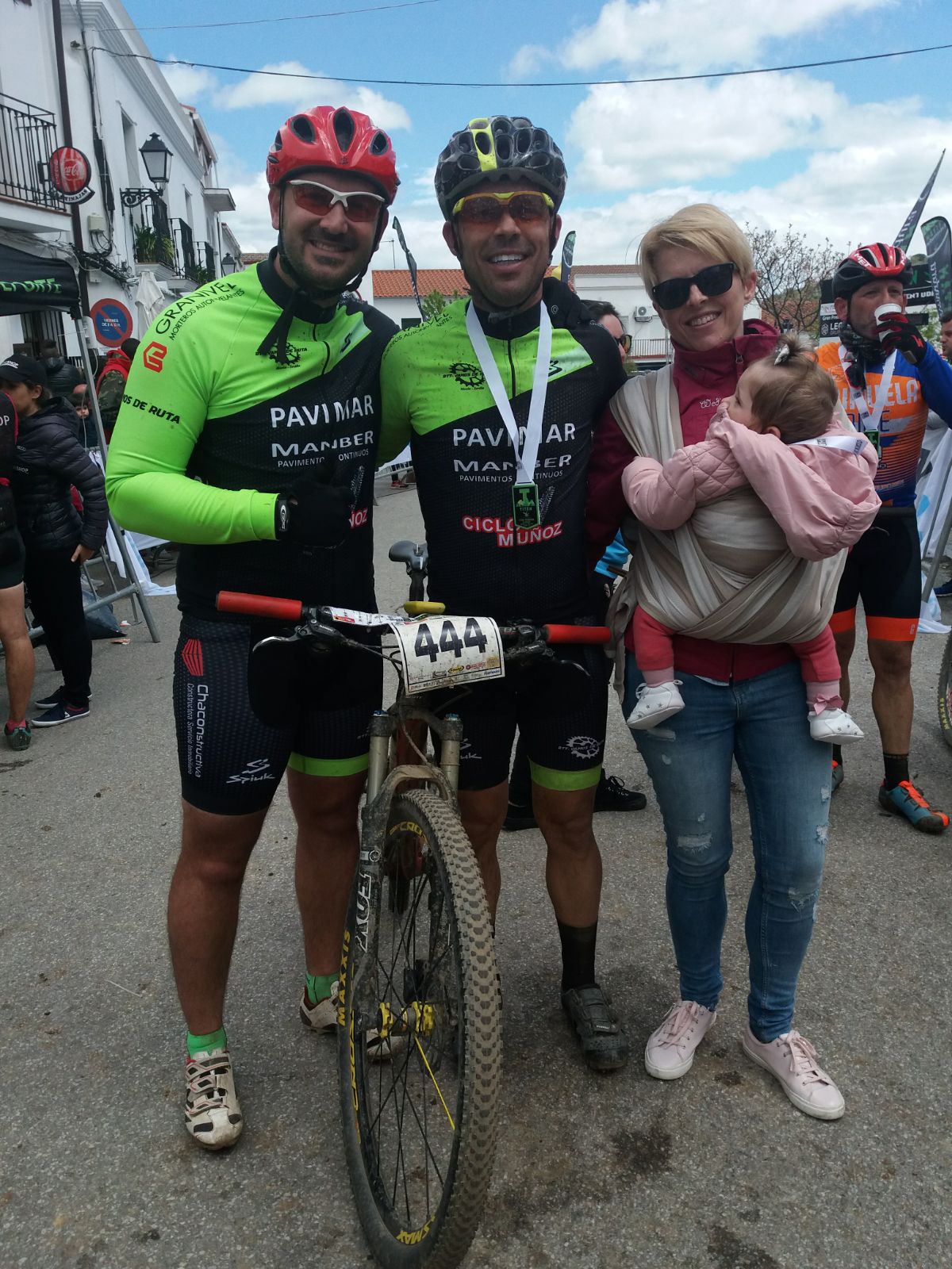 Lo mejor de la ruta, como siempre, la llegada a meta, no por terminar el Infierno del Sur, que bien se ha ganado el nombre, sino por quien espera en ella, mi mujer Guadalupe y mi hija Julia que siempre están ahí dando ánimos y apoyándome. Esta vez también estaban mi hermana Rakel y mi cuñado Juanma a los cuales les quiero dar las gracias, ya que el tiempo no estaba para estos menesteres, pero me hizo una ilusión enorme el poder veros. Y la gran sorpresa del día, mi cuñada Vanesa que vino a darle una sorpresa a Rubén. MUCHISIMAS GRACIAS A LOS 5.
